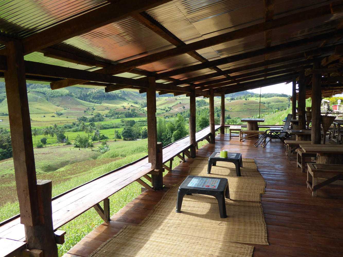 We stopped for an iced coffee at 'Three Mists', around 30K from Mae La Noi.