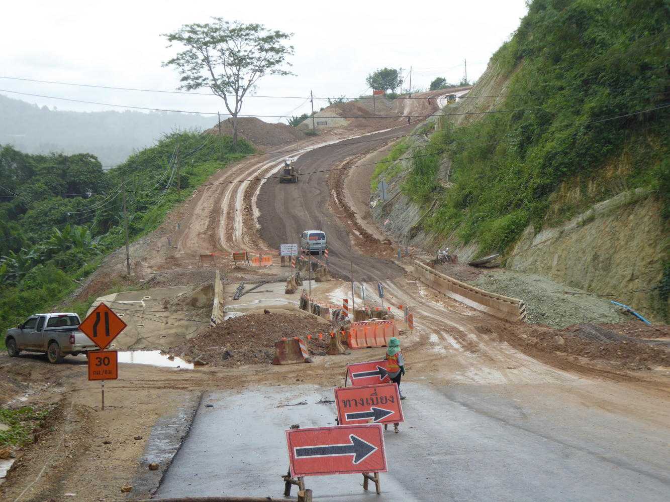 We'd planned to ride to Huay Xai today. The ride started well, along the 1290 with a wonderful spell along the 4007 to miss out the biggest hill. Then we rejoined the 1290, conquered the next biggest hill.....and hit roadworks. Or, should I say, deep mud with sliding vehicles and road rollers to avoid! It went on for several km - we had to walk. Not impressed.....