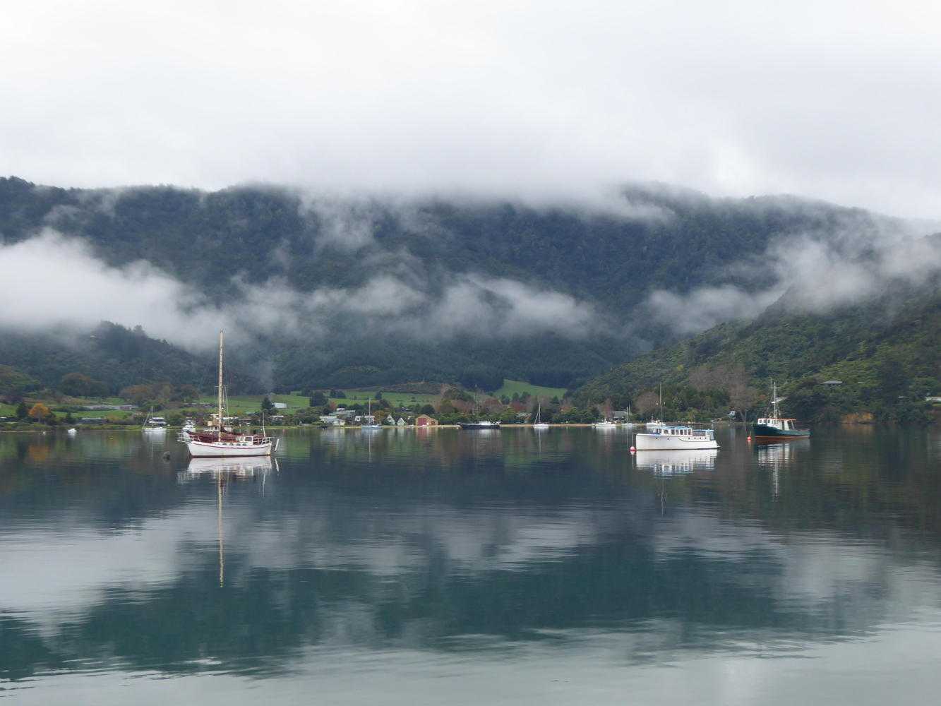We had planned to ride along Kenepuru sound and camp at one of the DOC campsites, but one look at the weather forecast made us think again! Hence heading straight for Picton. It’s a beautiful ride along the Queen Charlotte Drive, with plentiful gorgeous views of the sound with the same name. We set off in rain but it cleared up fairly quickly, just leaving wispy low cloud over the forested hills - very atmospheric. The road was very quiet with a couple of hills to add a bit of ‘interest’.